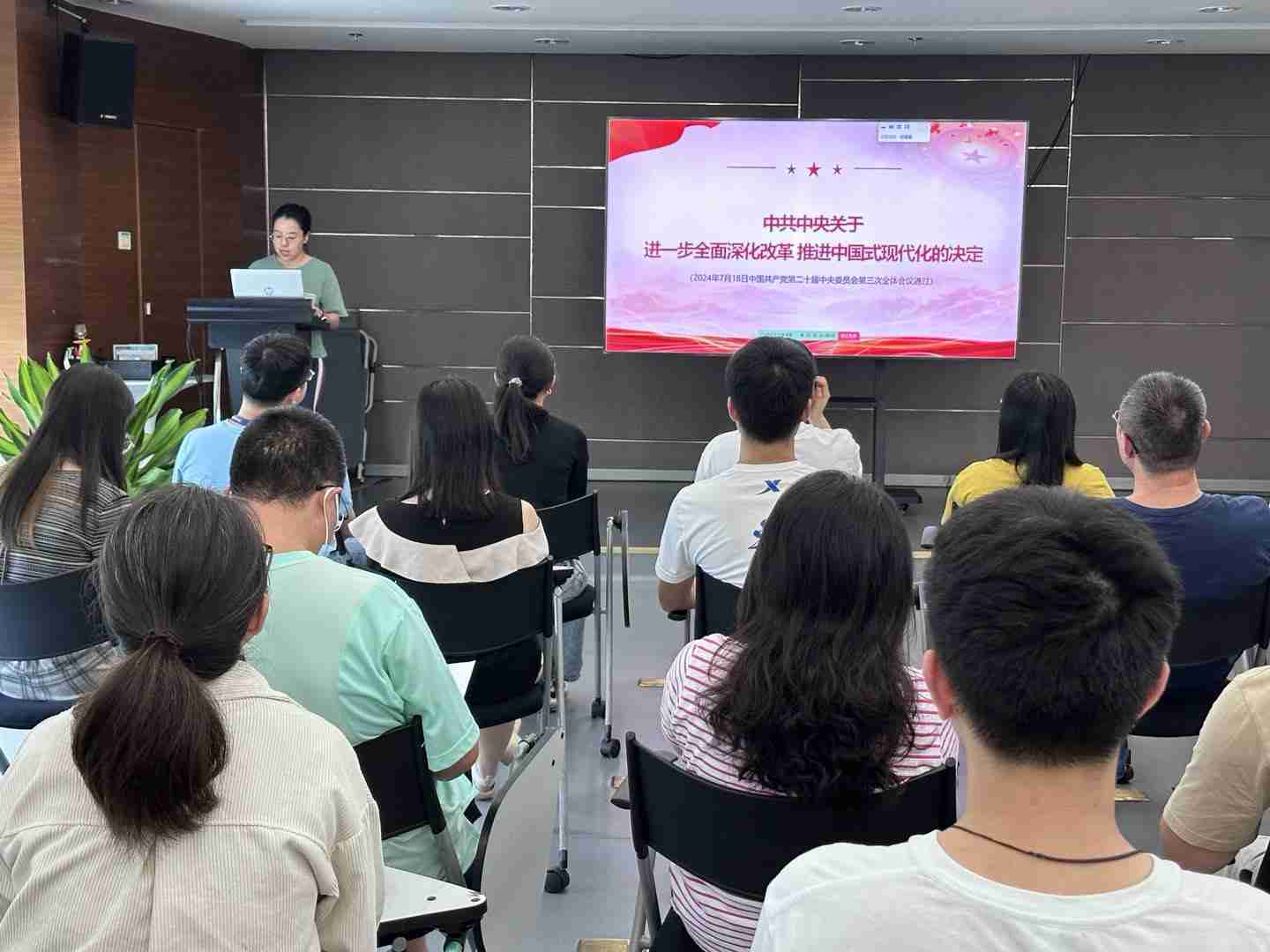 9月25日,,,一竞技党总支召开会议,,,,聚焦党的二十届三中全会审议通过的《中共中央关于进一步全面深化改革 推进中国式现代化的决定》(以下简称《决定》)原文,,,,专题学习全会精神,,,进一步提高思想认识、、强化理论武装。。。党总支全体党员、、、发展对象、、、入党积极分子参加会议。。。