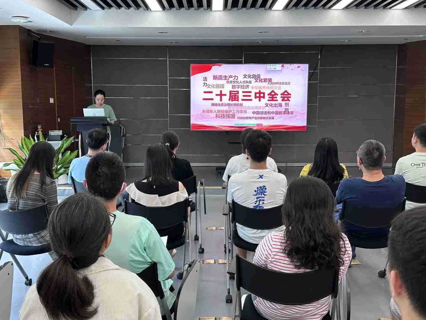 与会人员深入学习《决定》内容。。。党的二十届三中全会提出必须增强文化自信,,,,发展社会主义先进文化,,弘扬革命文化,,,传承中华优秀传统文化,,,,加快适应信息技术迅猛发展新形势,,,构建更有效力的国际传播体系,,,,这为广大文化产业工作者指明了奋斗方向。。