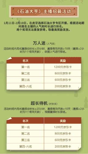 除了“油王”争霸赛,,,,精英主播招募活动亦同步开启!!赛事分时长奖和人气奖,,奖励同样丰厚!!