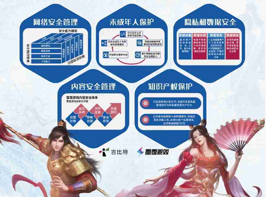 本次一竞技展区以网络安全管理、、、内容安全管理、、、未成年人保护、、、隐私和数据安全、、、知识产权保护五个模块介绍公司游戏安全工作成果,,,,体现一竞技高度重视网络安全,,严格遵守相关法律法规要求,,,积极承担企业主体责任。。。